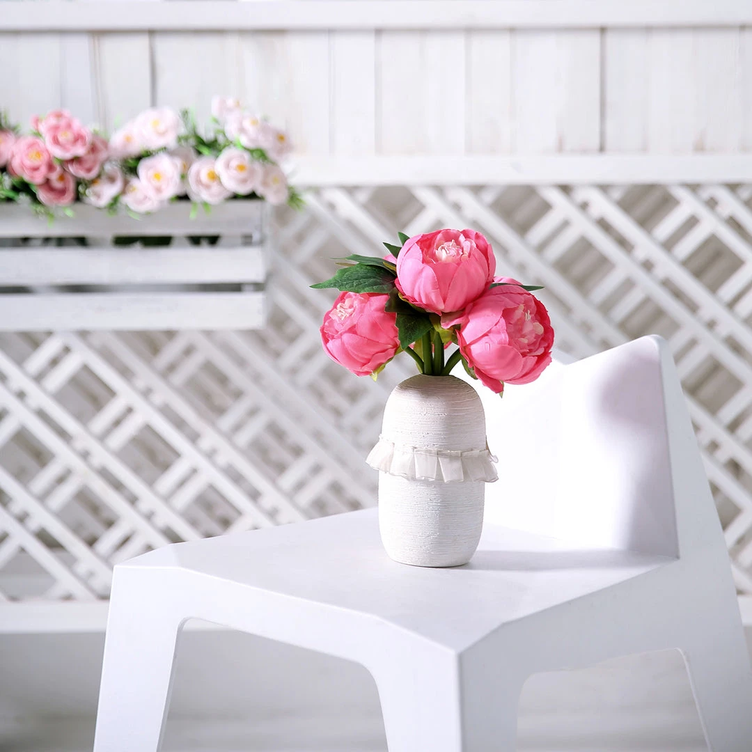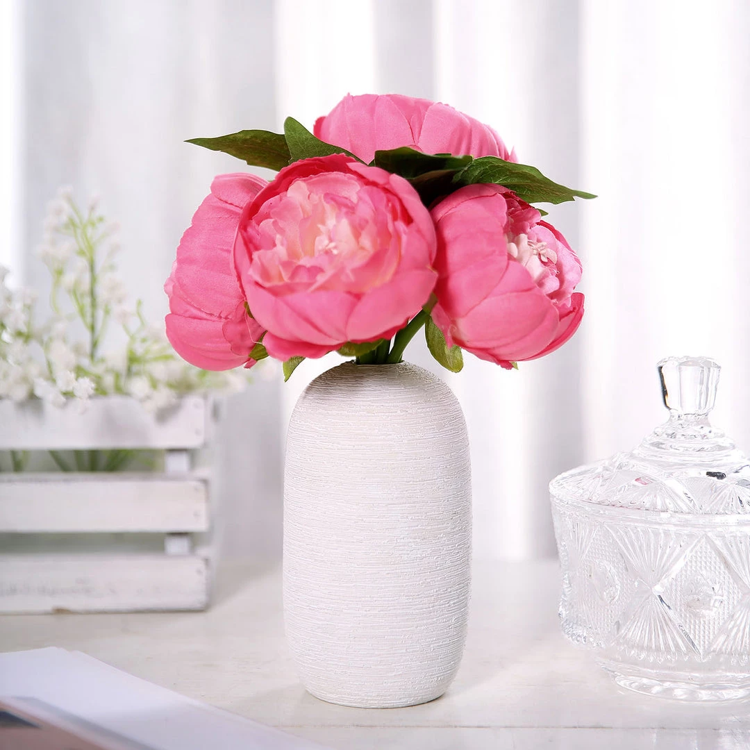 HIER_1130 5 Flower Head Fuchsia Peony Bouquet | Artificial Silk Peonies Spray