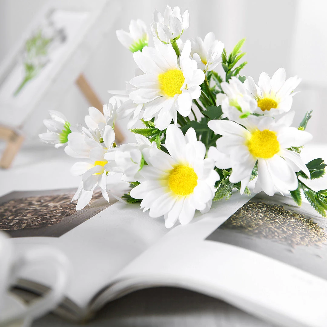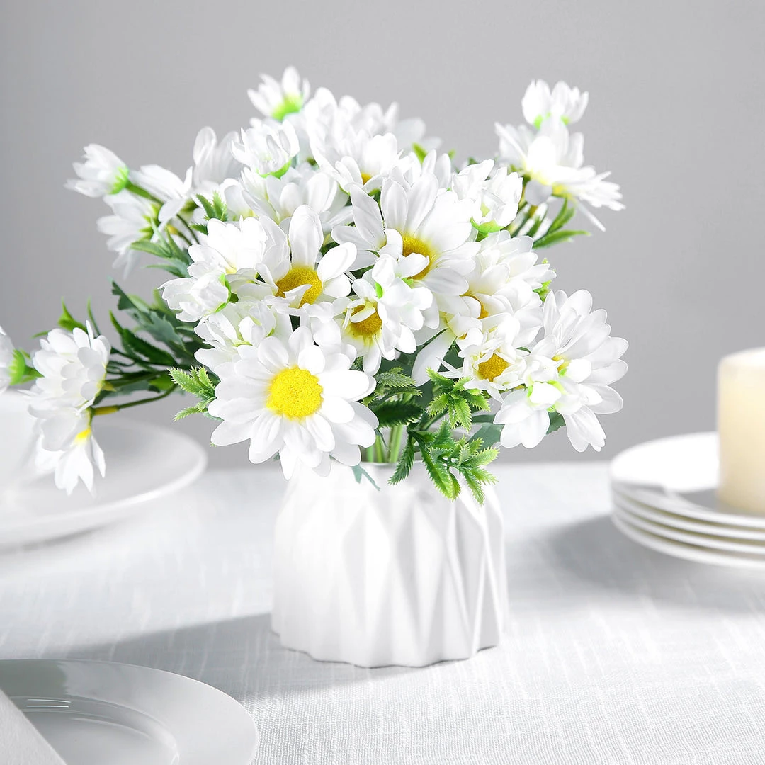 HIER_1150 Chargers & Centerpieces 4 Bushes | 11″ White Artificial Silk Daisy Flower Bouquet Branches