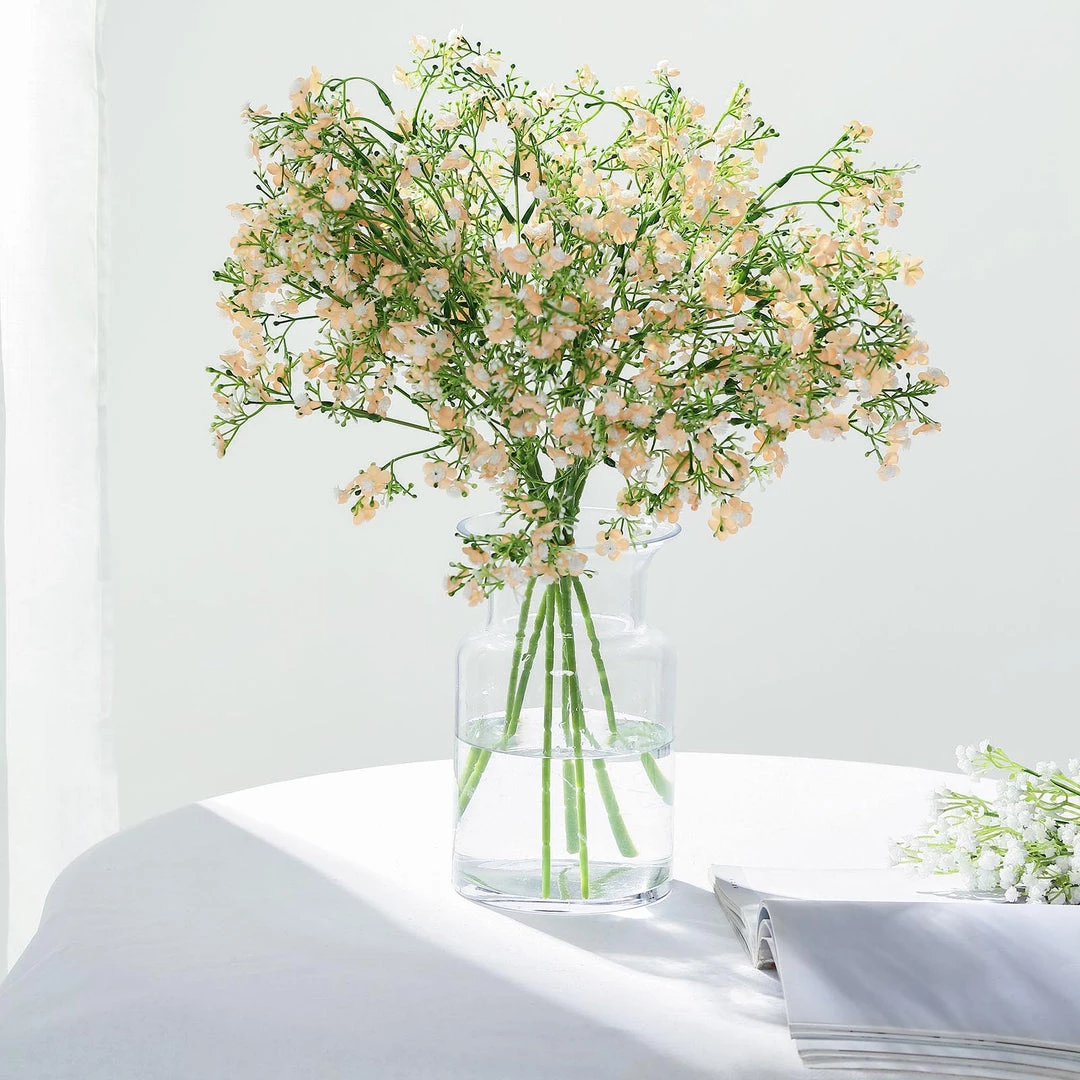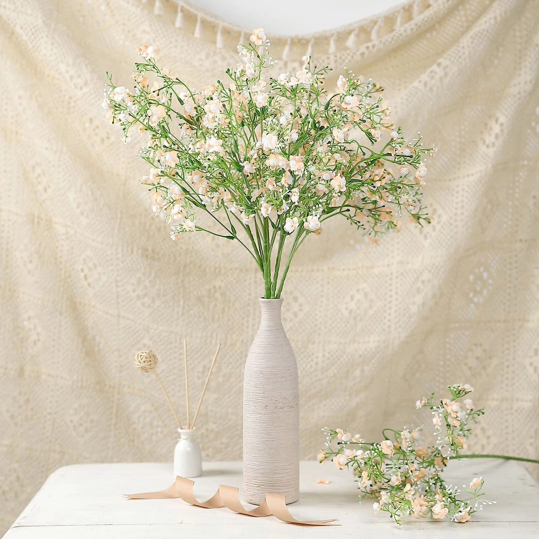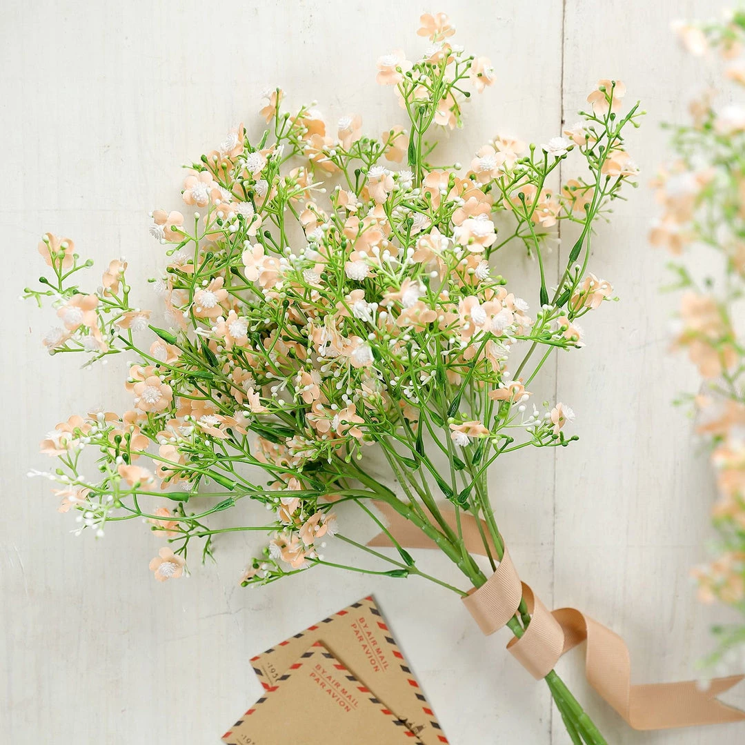HIER_1150 Faux Cherry Blossoms | Baby Breath 4 Stems | 27″ Blush/Rose Gold Artificial Silk Babys Breath Gypsophila Flowers