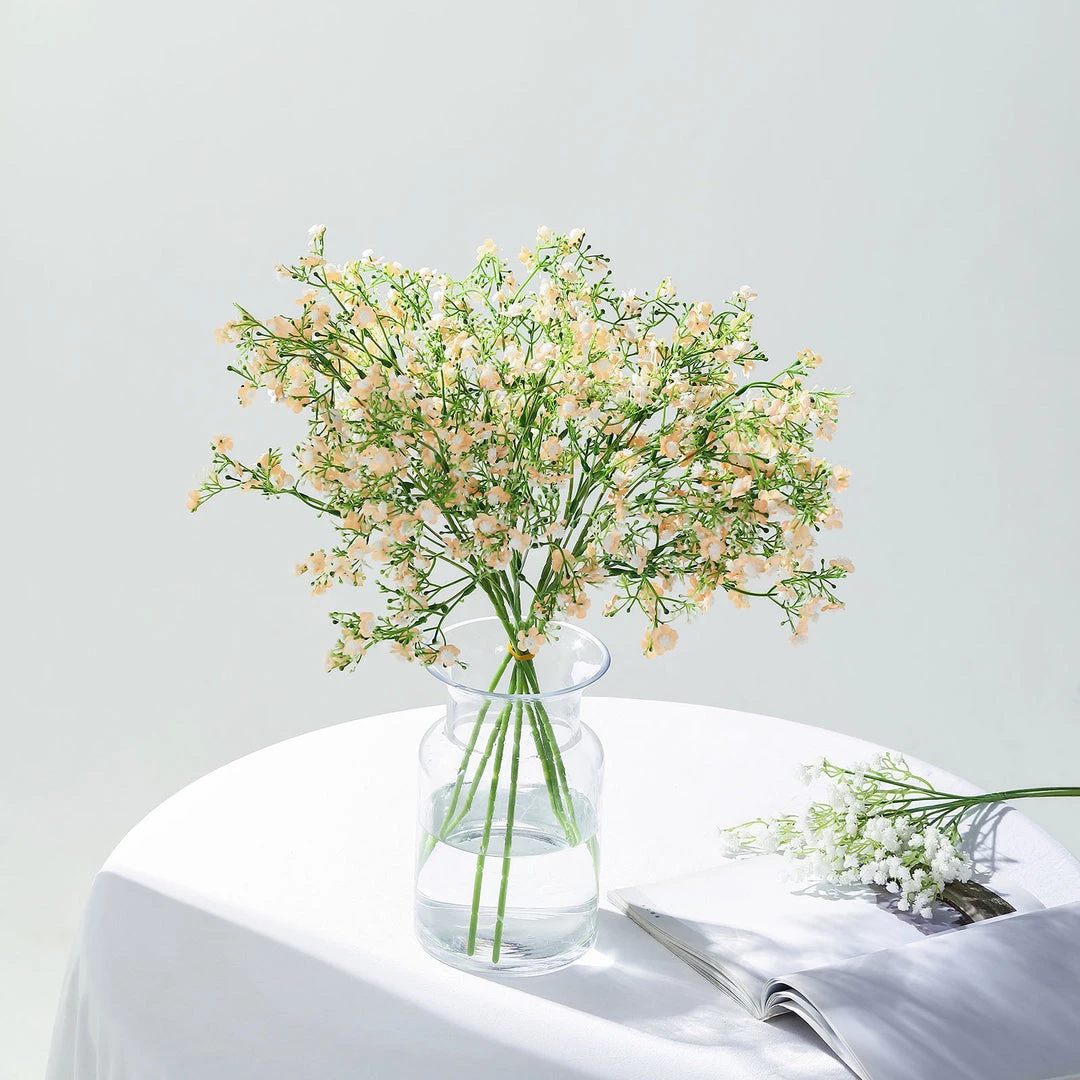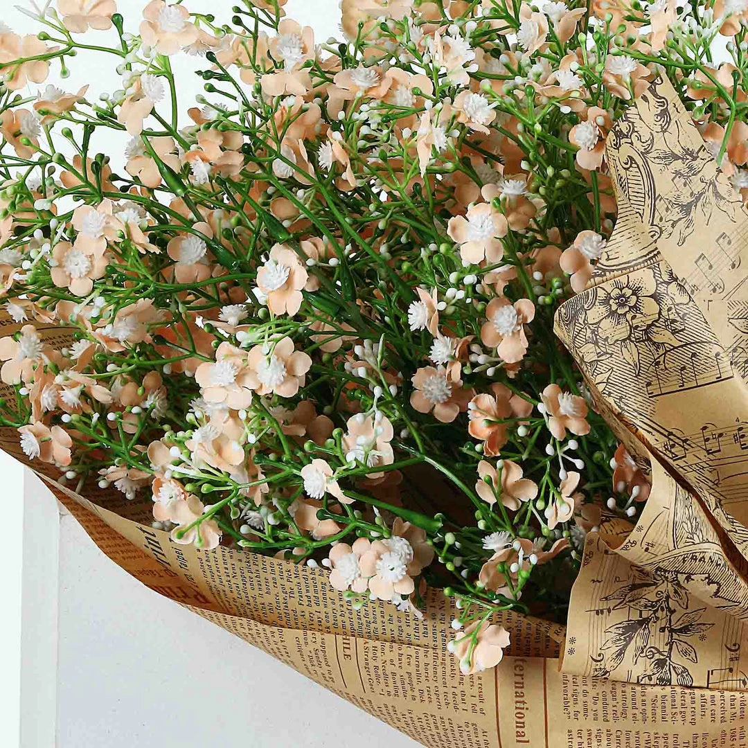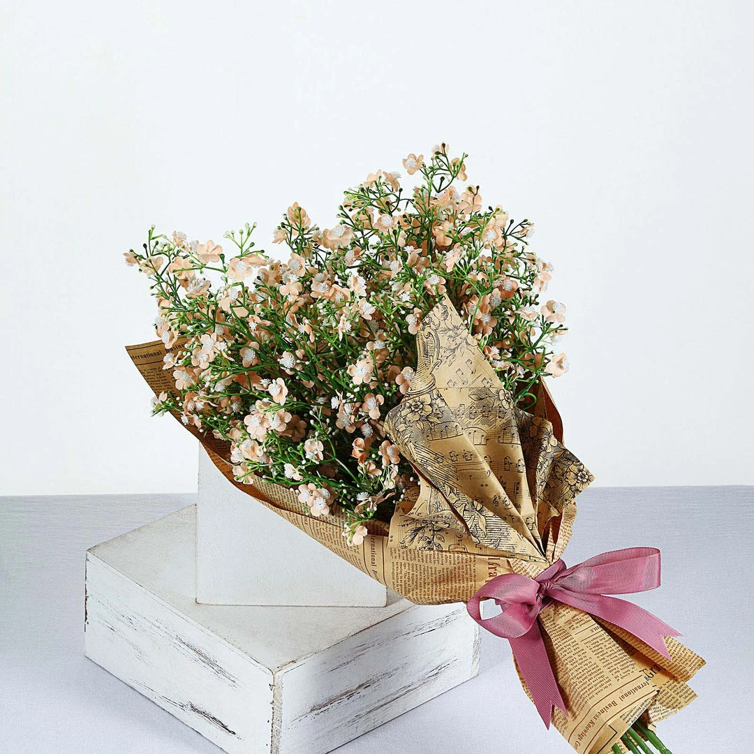 HIER_1150 Faux Cherry Blossoms | Baby Breath 4 Stems | 27″ Blush/Rose Gold Artificial Silk Babys Breath Gypsophila Flowers