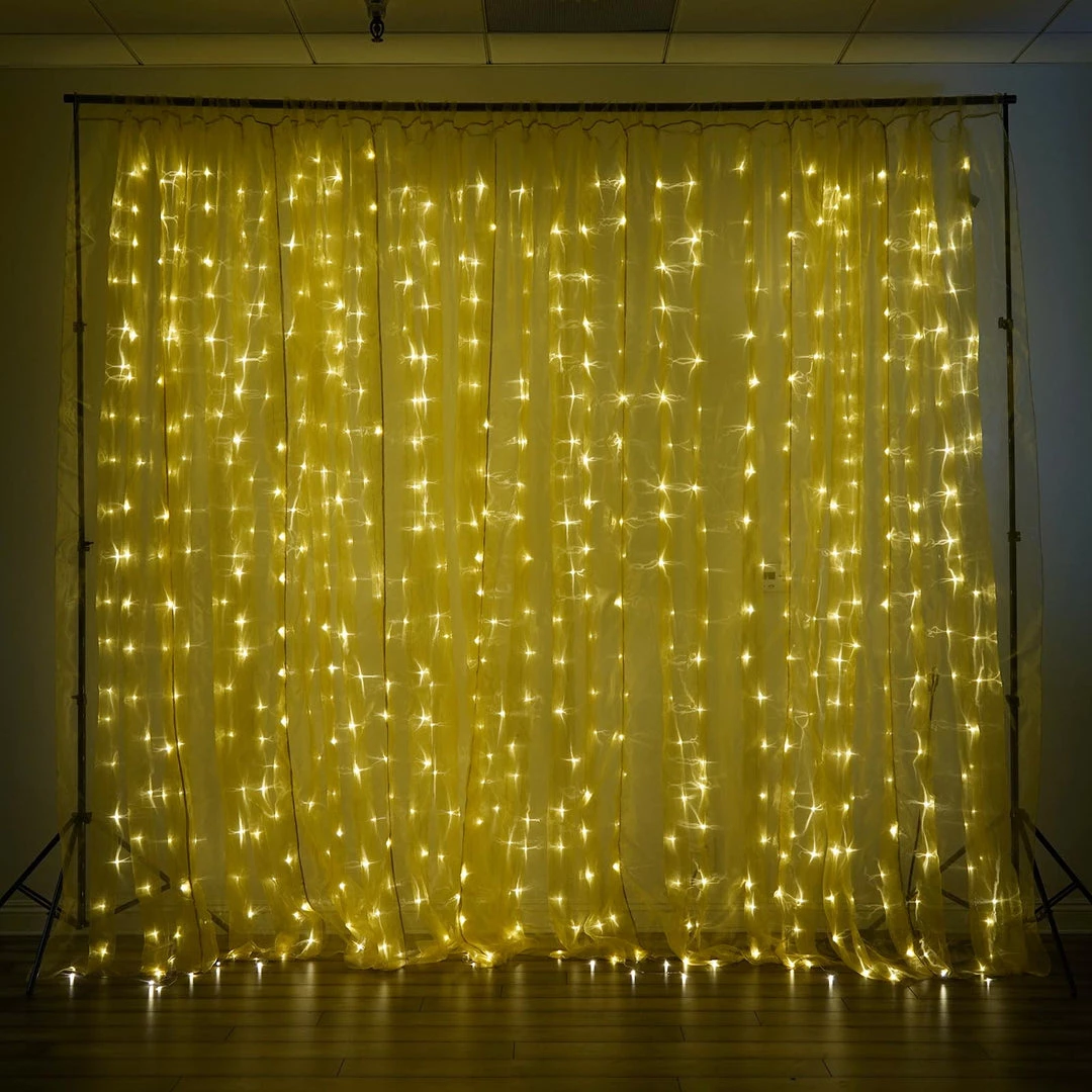 | Quantity: 1 Gold Organza Backdrop + 600 Warm White LED Lights |