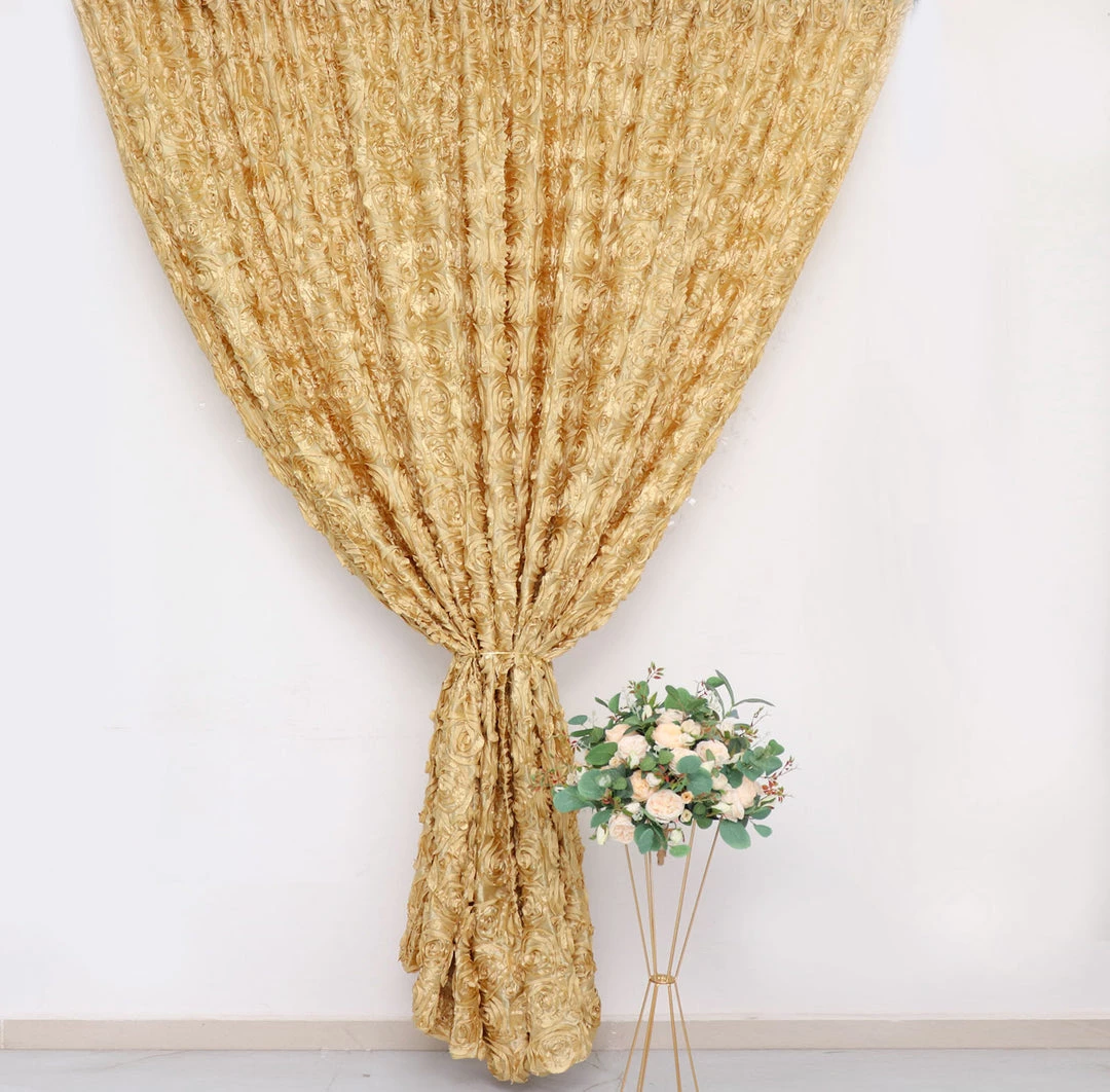 | Backdrop comes with rod pockets for easy slide-in/slide-out of curtain rods |