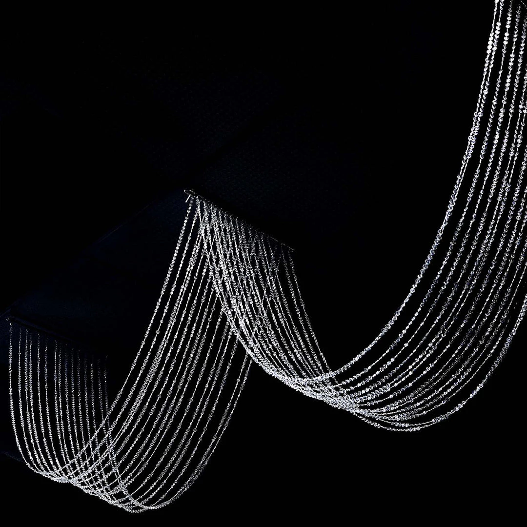 8-2. Once the bead strands are aligned, pull each strand of beads in the direction of your preference to help shape the size of the Drape Effect.