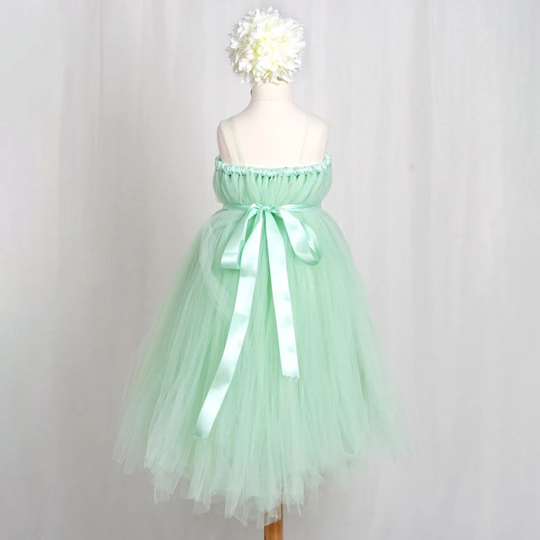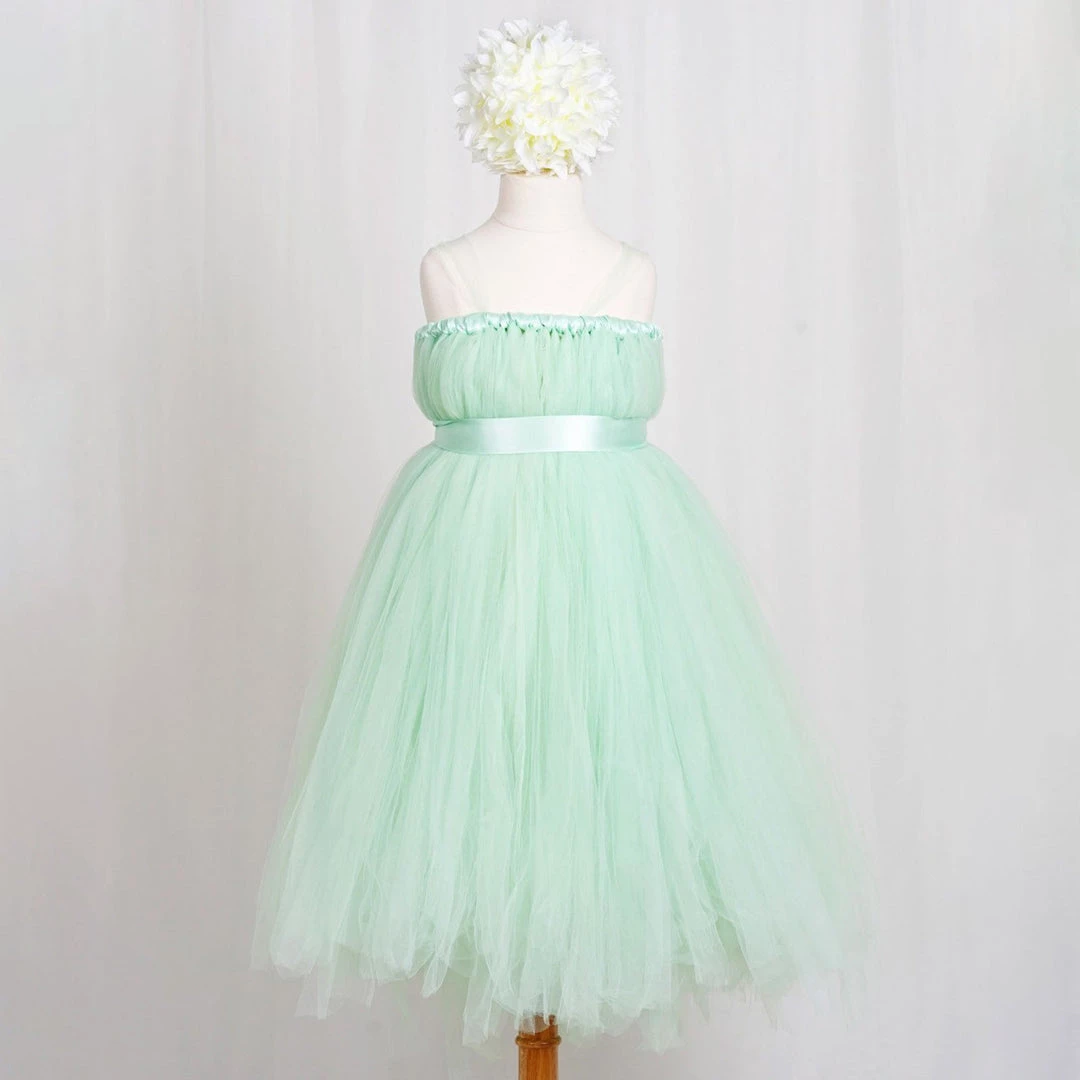 Leave all the spectators bedazzled by glamming your doll up in this gorgeous full length tulle dress. The sleeveless spaghetti strap bodice features amazing gathered details neckline and a lustrous mint green tied back waist band adornment on empire waist. The fully lined mint green tulle puffy skirt adds dimensions for a modish look. Crinoline layer and lining within give an ethereal fullness to the skirt. This floor length tulle dress has depth of sophistication, classiness, and delicacy about it that will make your sweetheart feel and look like an empyrean princess. The classy look and stylish stitching make this apparel a perfect fit for weddings, birthdays, communions, holiday parties and other festive occasions. The dress includes a slip dress and a mint green satin ribbon sash. No sash pin included, please purchase them separately under accessories categories. Some of the headpiece can be used as sash pin. Suggested wear the dress with petticoat to get the fullness look. Please be aware the tulle dress have no lining(underskirt), petticoat or leggings are strongly recommended.