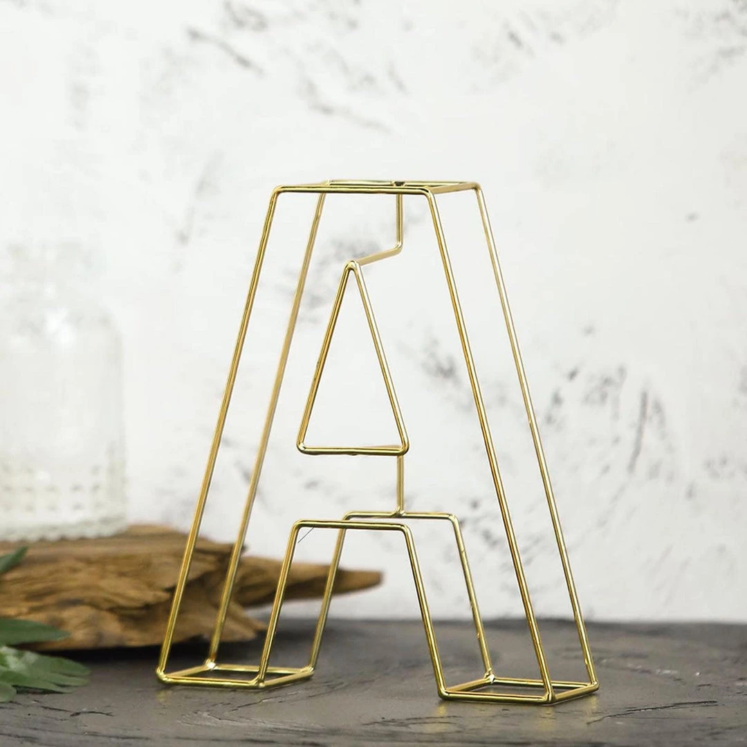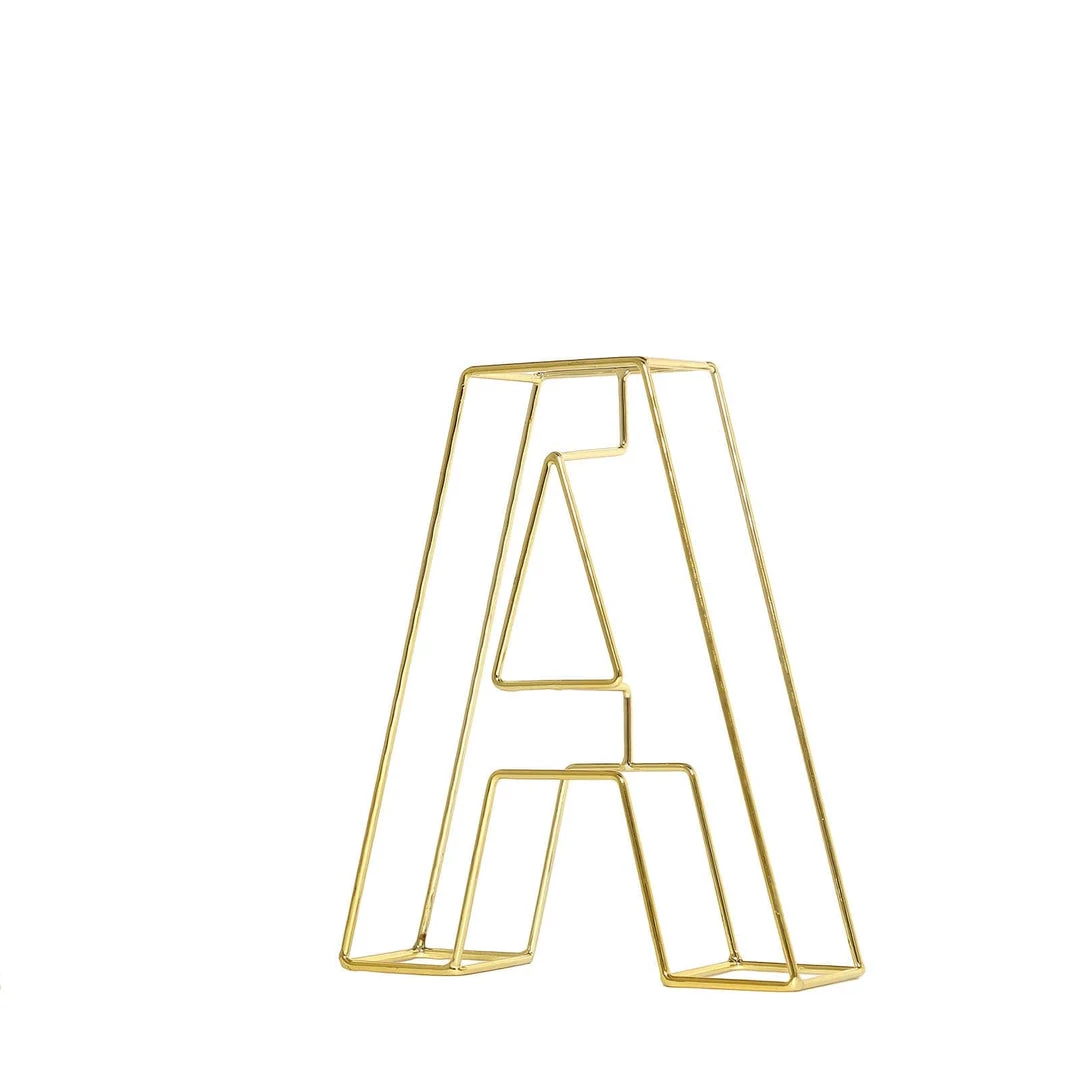 HIER_3720 Chargers & Centerpieces 8″ Tall | Gold Wedding Centerpiece | Freestanding 3D Decorative Wire Letter | A