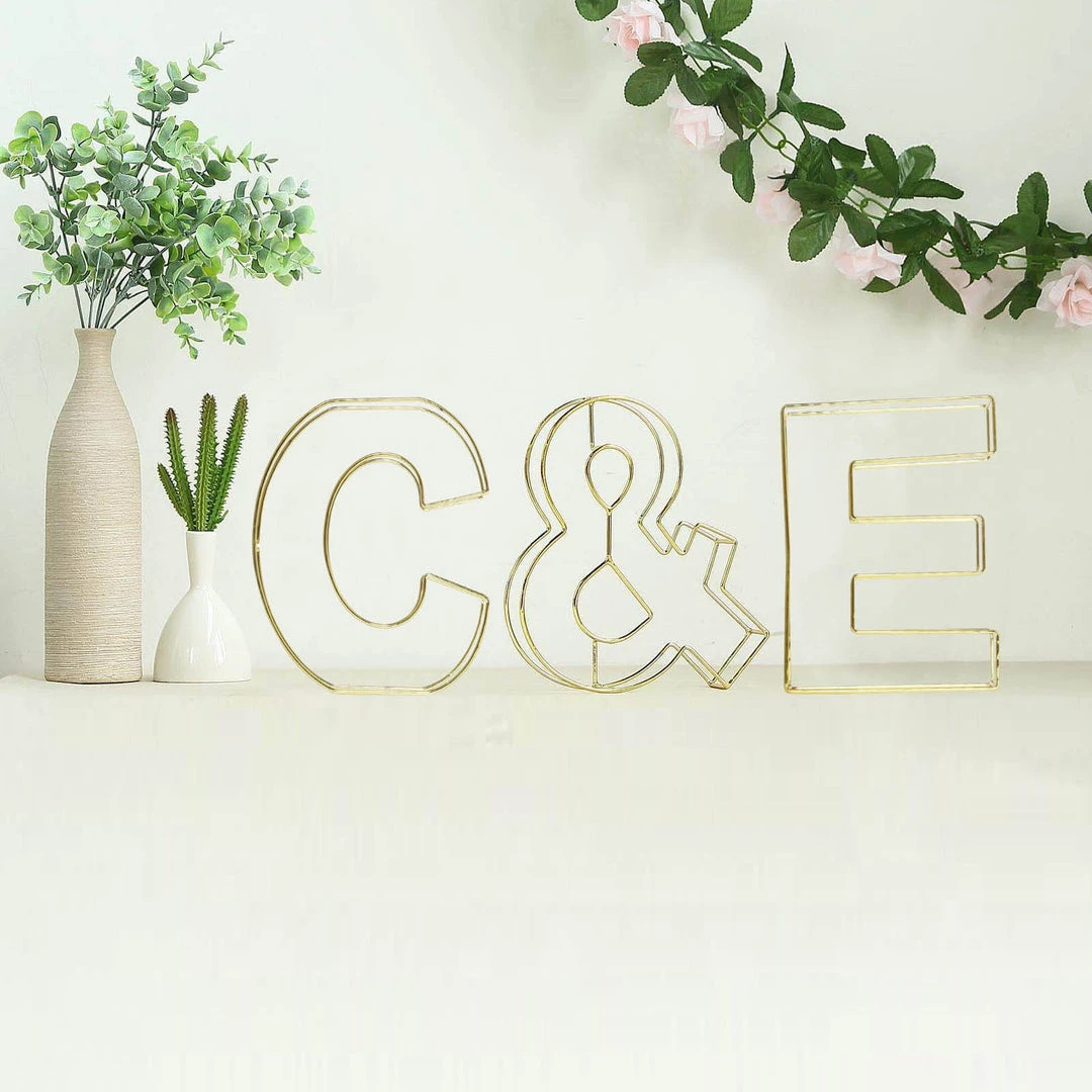 HIER_3720 Chargers & Centerpieces 8″ Tall | Gold Wedding Centerpiece | Freestanding 3D Decorative Wire Letter | C