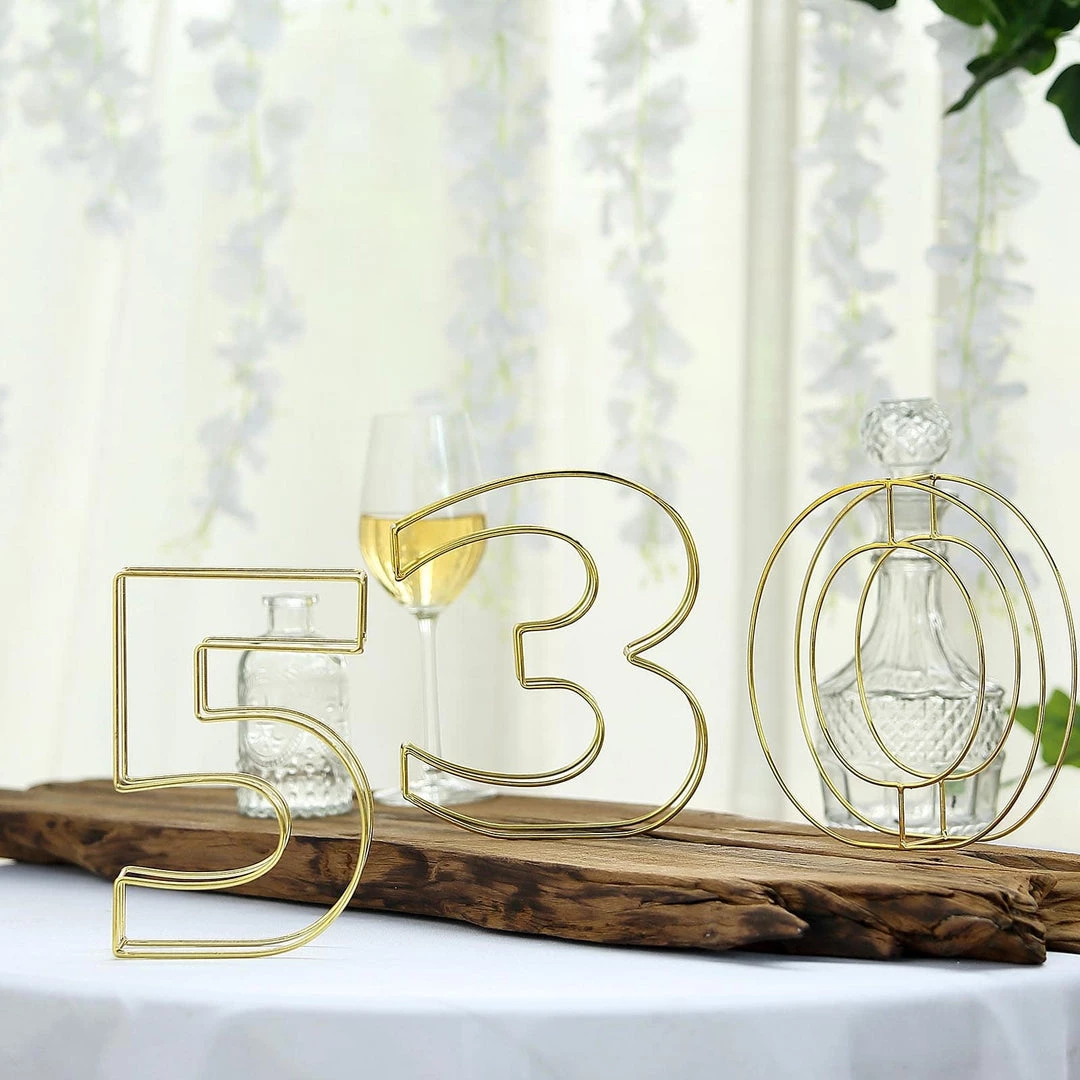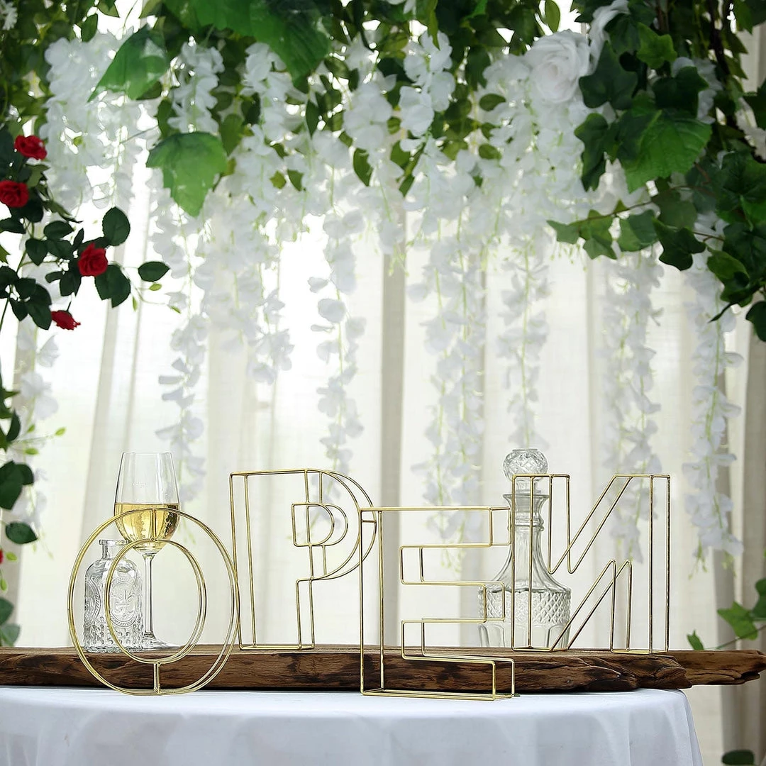 HIER_3720 Chargers & Centerpieces 8″ Tall | Gold Wedding Centerpiece | Freestanding 3D Decorative Wire Letter | K