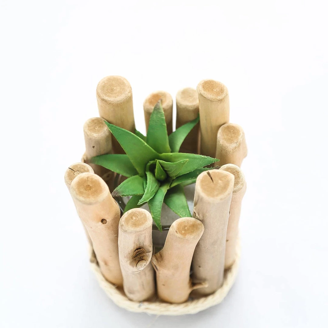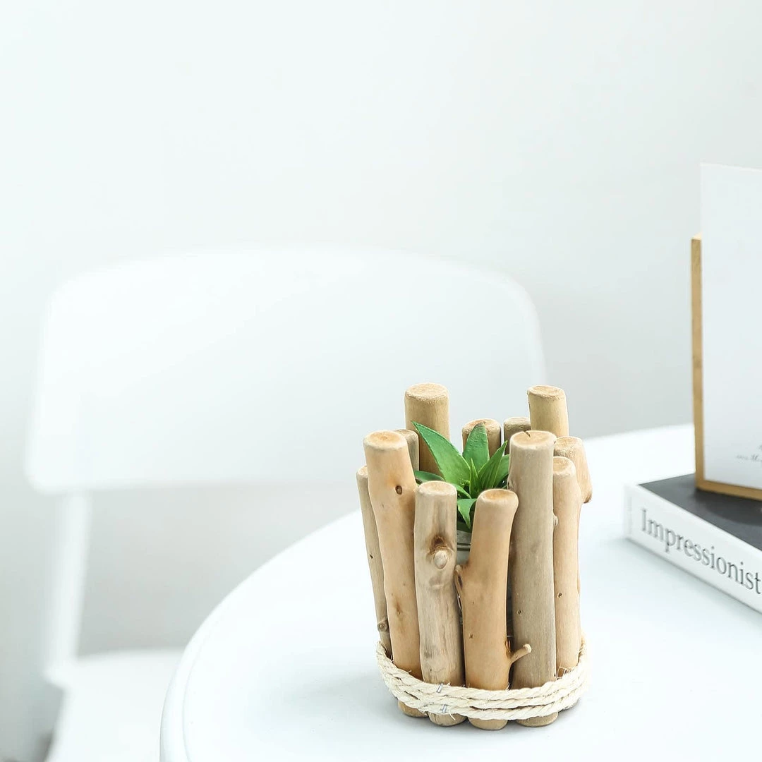 | Style: Handmade Round Wooden Holder with Glass Holder |