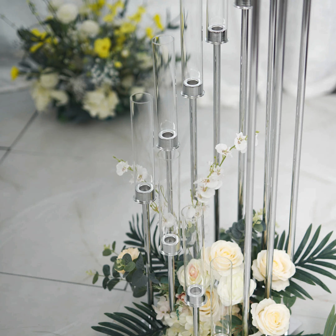 - Most standard taper candlesticks in both wax and LED will fit centerpiece. Candles are not included.