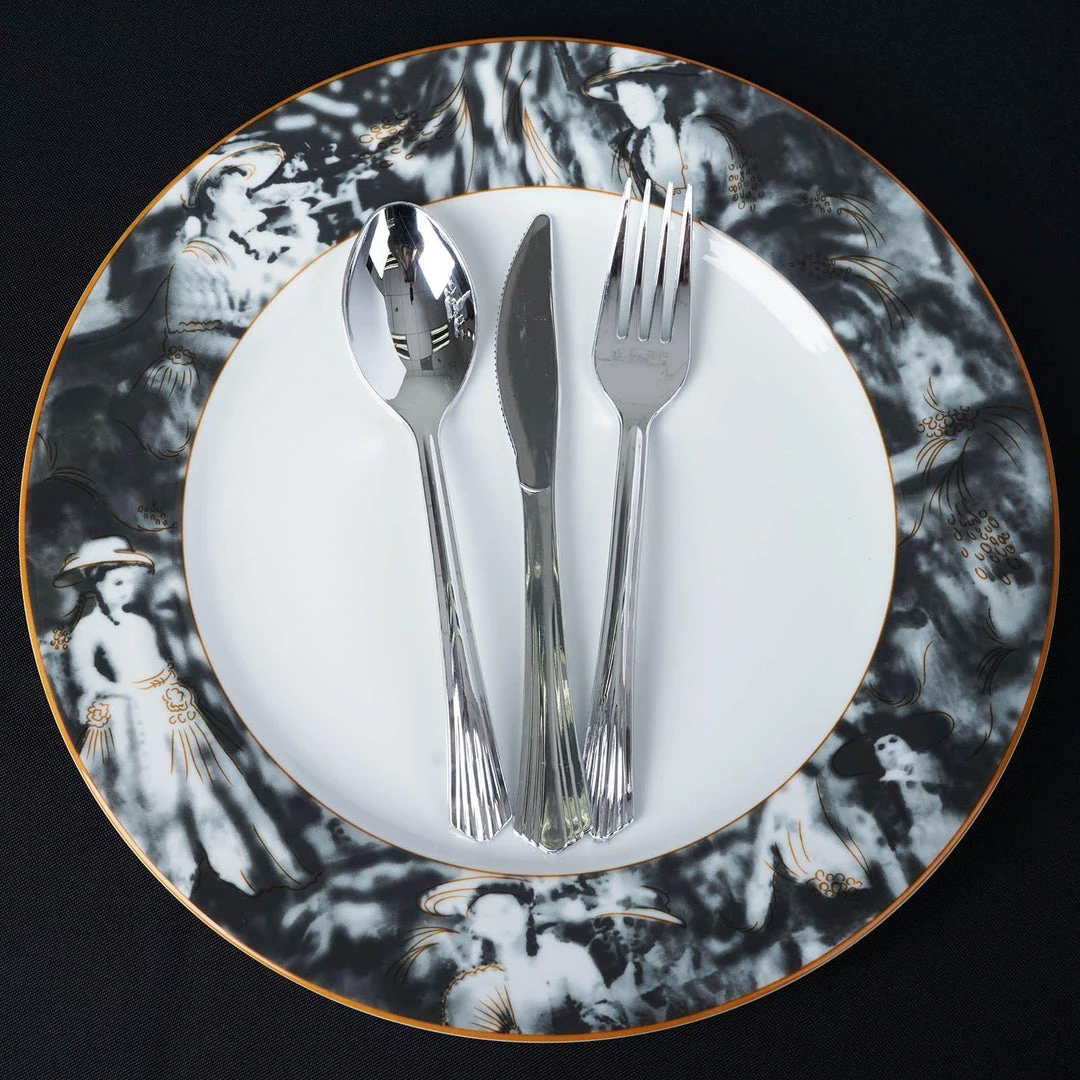 Add a voguish Victorian charm to your dining experience with these premium quality commercial grade Porcelain Dinner Plates that have chic Art Nouveau style custom decoration on the rim. The strong metallic-hued rims also give solid sturdiness to the plates, making them difficult to chip. Smooth, glossy porcelain coupled with vintage print accents will impart a regal sophistication to your dinner tables, banquet tables, guest tables, and other culinary servings. Our Porcelain dinnerware is completely lead-free, their exceptional quality and strength make them absolutely dishwasher and microwave safe.