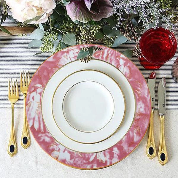 Add a voguish Victorian charm to your dining experience with these premium quality commercial grade Porcelain Dinner Plates that have chic Art Nouveau style custom decoration on the rim. The strong metallic-hued rims also give solid sturdiness to the plates, making them difficult to chip. Smooth, glossy porcelain coupled with vintage print accents will impart a regal sophistication to your dinner tables, banquet tables, guest tables, and other culinary servings. Our Porcelain dinnerware is completely lead-free, their exceptional quality and strength make them absolutely dishwasher and microwave safe.