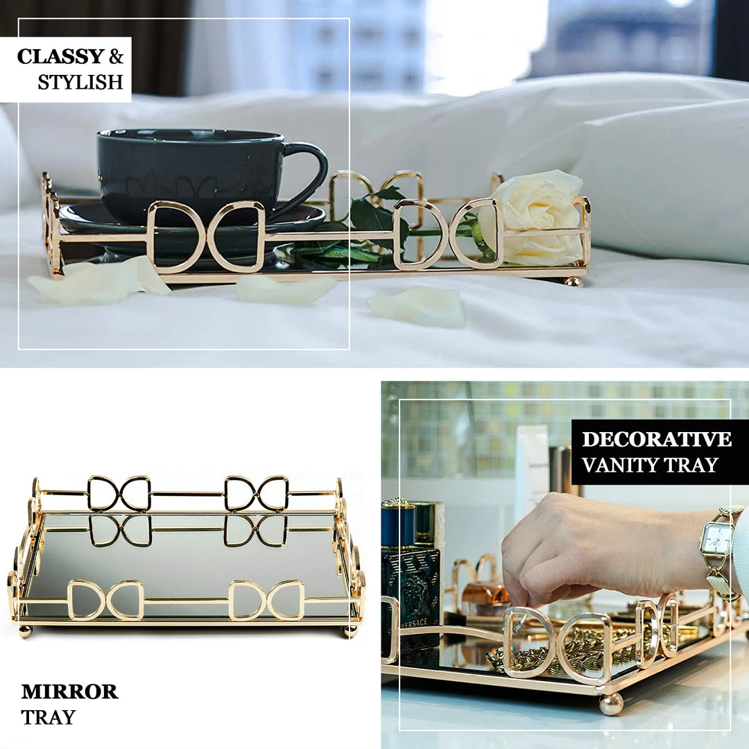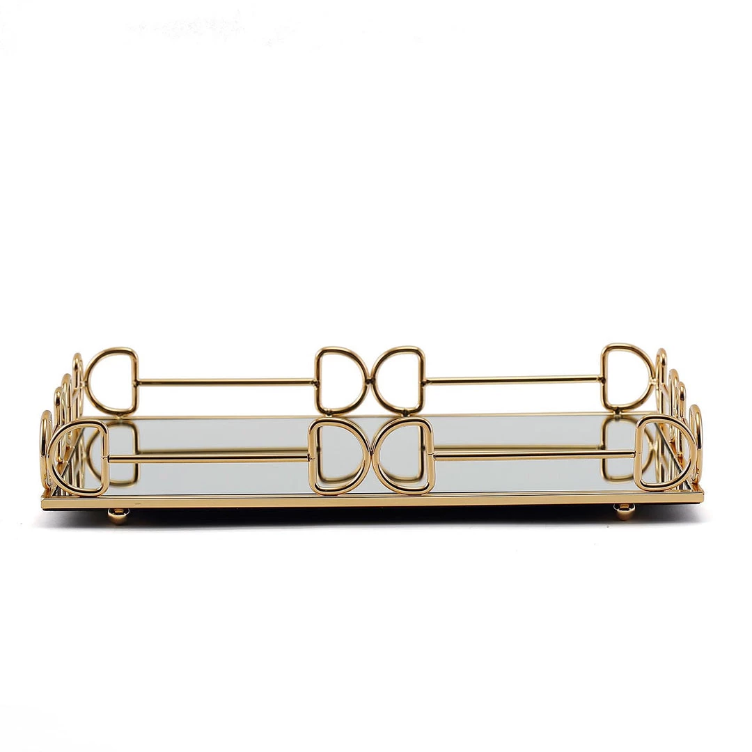 - Style: Rectangular Metal Tray w/ Glass Mirrored Top