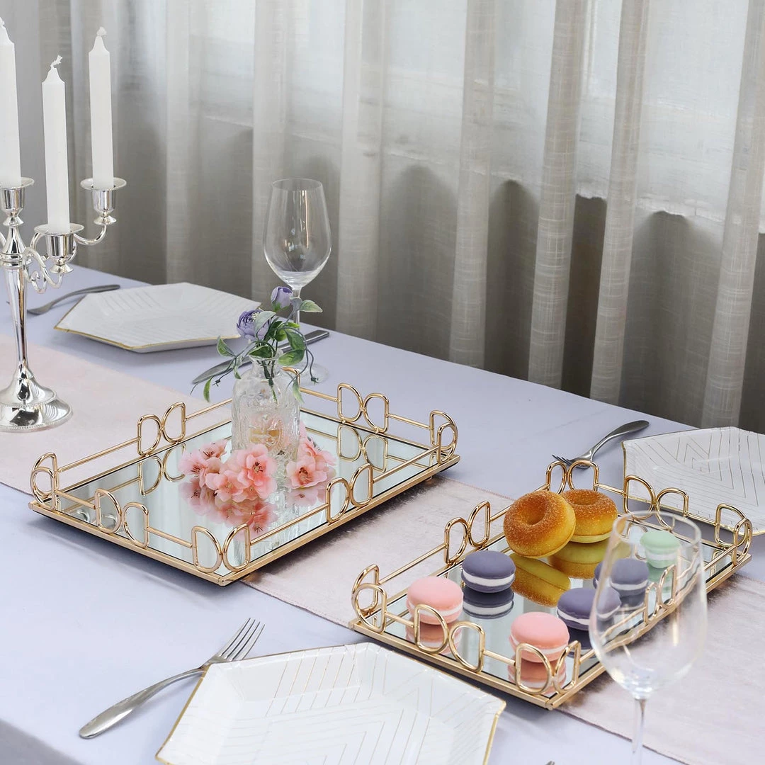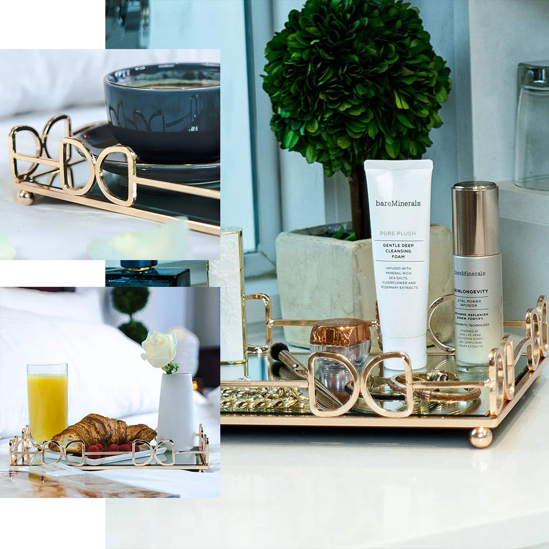 | Quantity: Set of 2 Mirrored Vanity Trays |