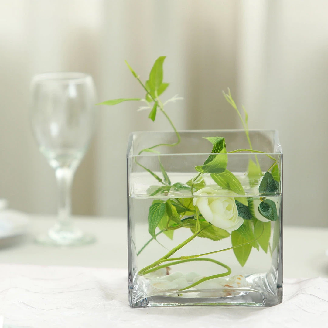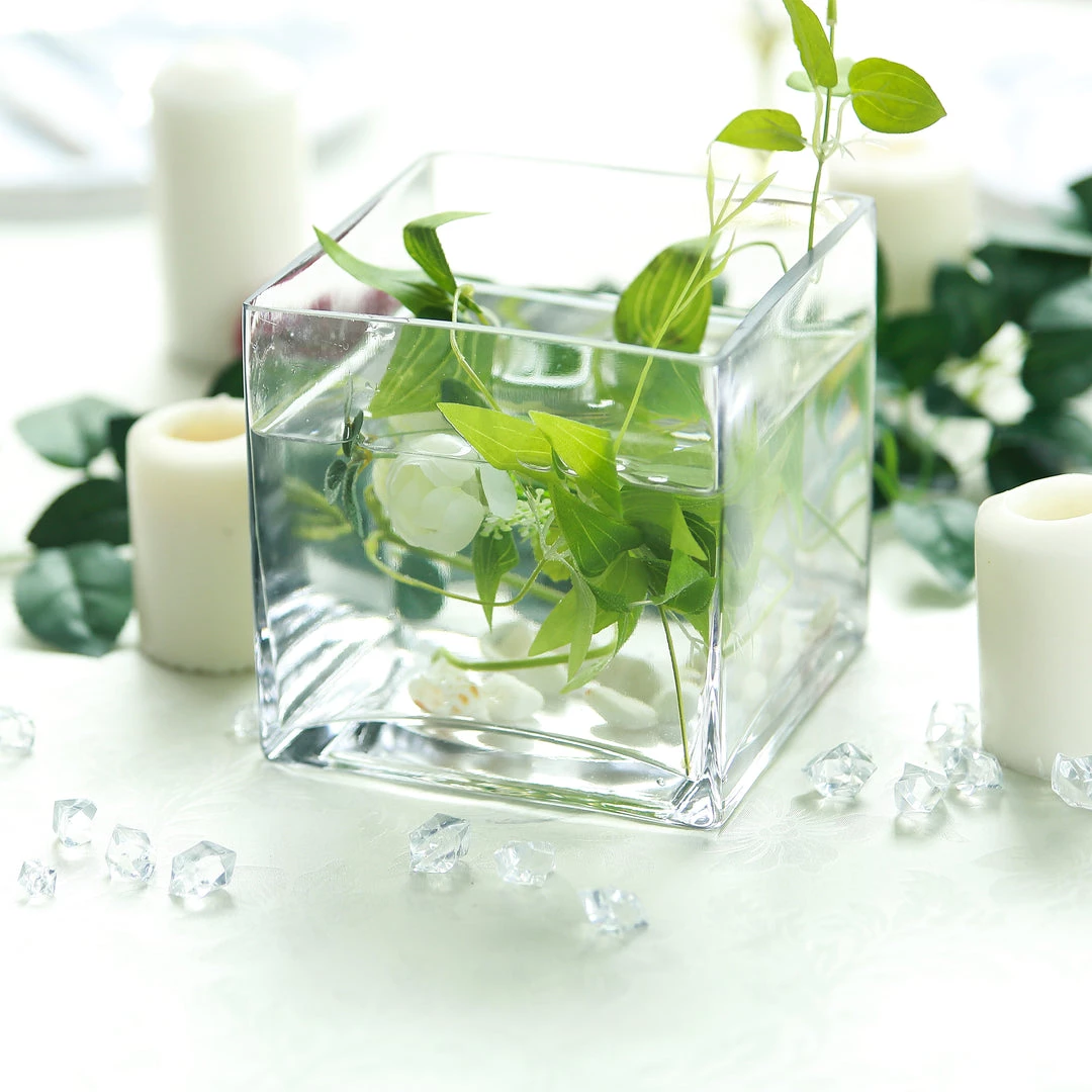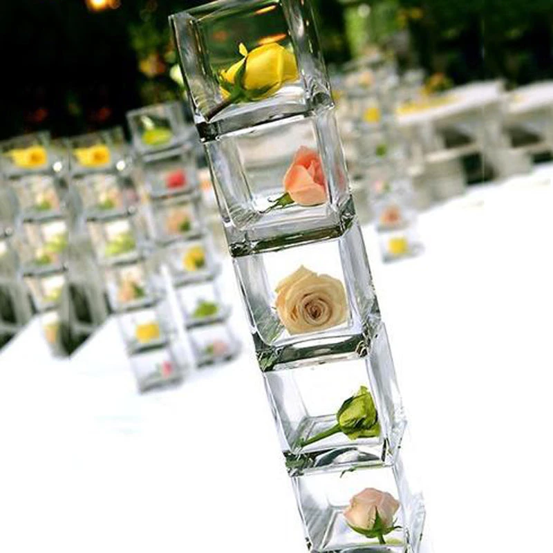 Our hand blown cube vases with their thick walls and weighted base will give a modern twist to any floral or centerpiece decoration. These glass centerpiece block vases will instantly add flair and visual appeal to any ordinary party or table setting.