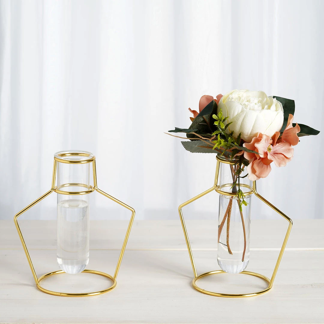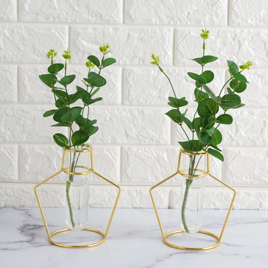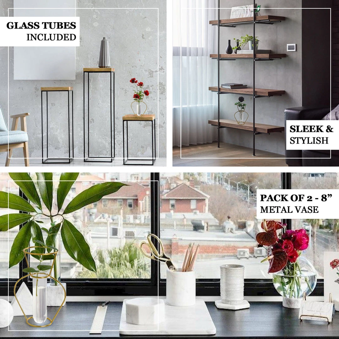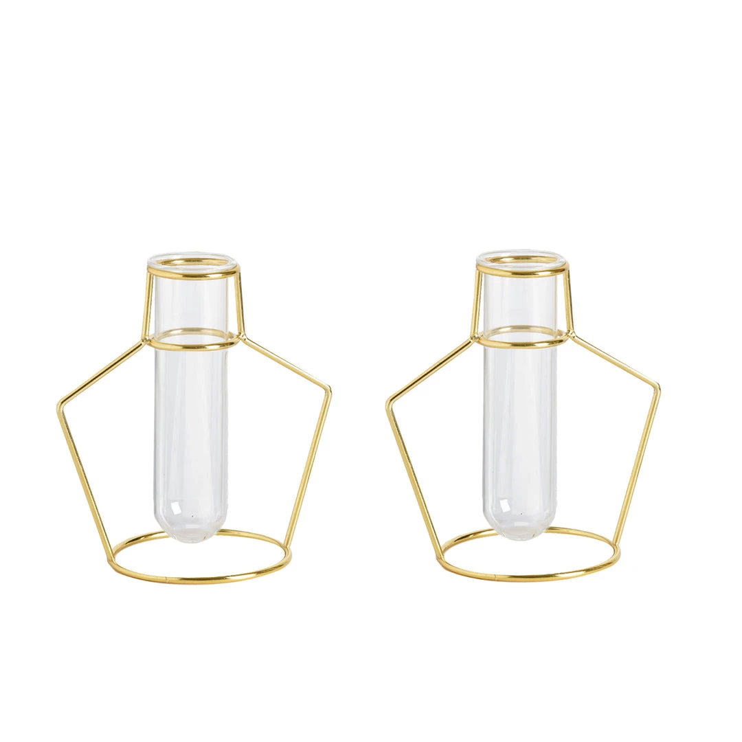 | Quantity: 2 Metal Vases with 2 Glass Tube Holders |