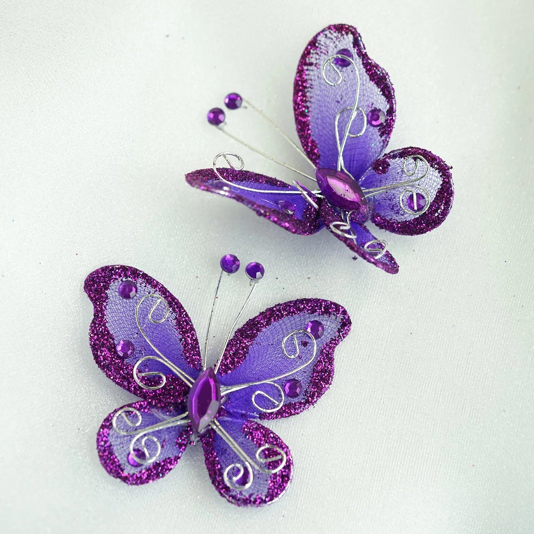 | Organza and Wire butterflies with rhinestone accents and glitter around the wings |