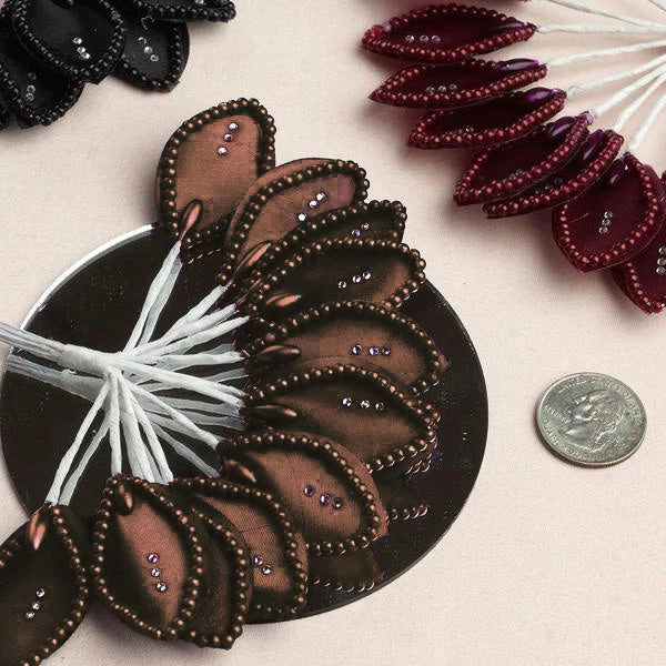 Rise and Shine with a Deva style by accentuating your favors, gifts, invitation and other creations with our pearl and rhinestone accented leaves. These glinting treasures not only mimic the freshness of a real leaf but also combine the stunning luster of pearls and flamboyant sheen of rhinestones. Let these lurid embellishments add a dash of extra glitz and glam into your flower decoration, apparels, accessories, favors, gift wrapping and other craft masterpieces.