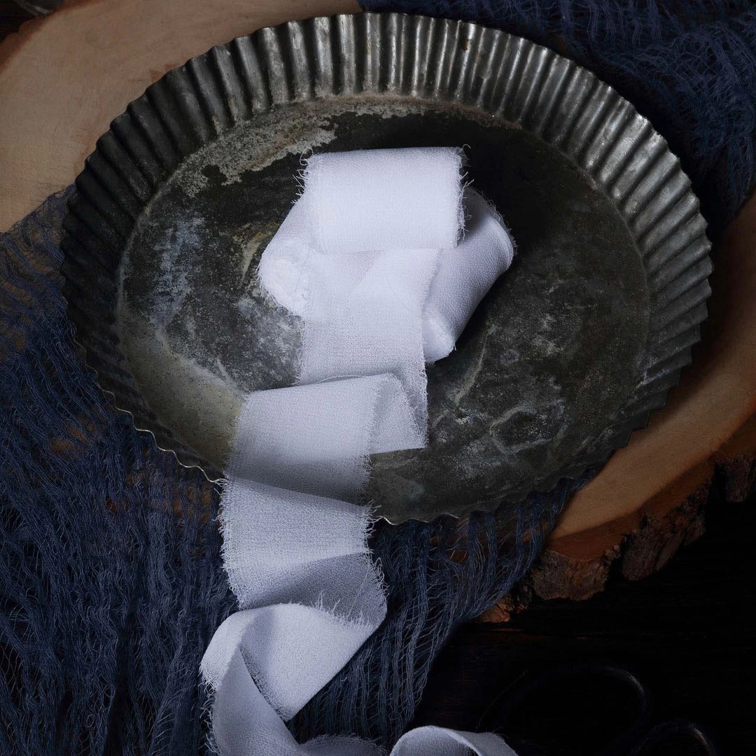 | 100% Handmade: Every step of this ribbon is processed by hand, including dyeing, tearing into ribbons, fraying and pressing. |