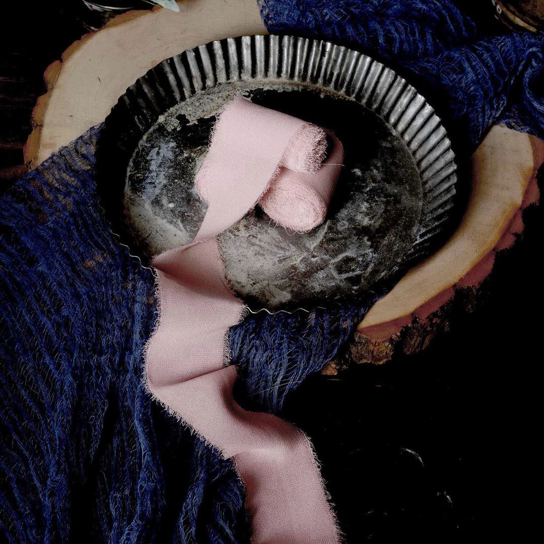 | 100% Handmade: Every step of this ribbon is processed by hand, including dyeing, tearing into ribbons, fraying and pressing. |