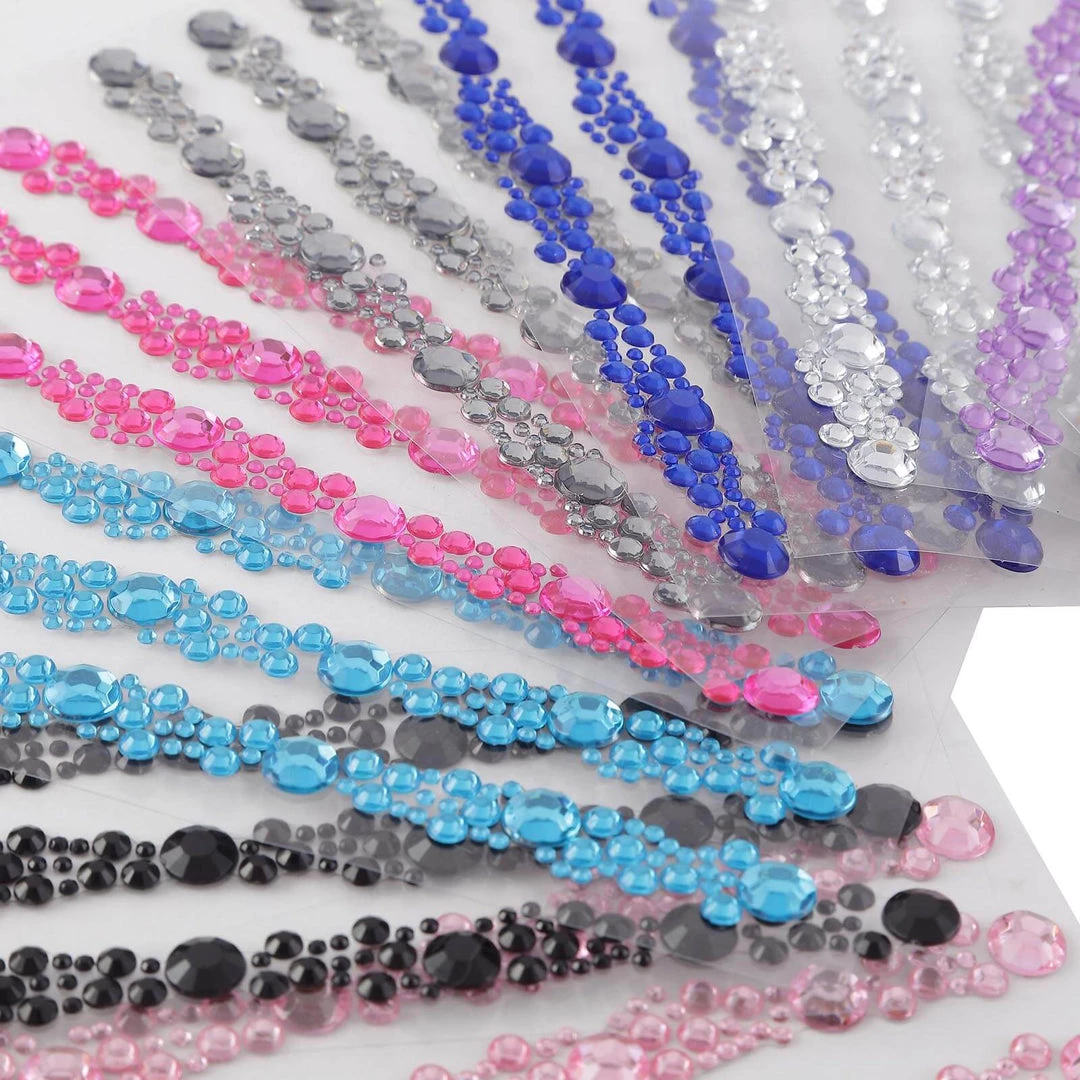 - QTY:Â 3 Strips Rhinestone Stickers
