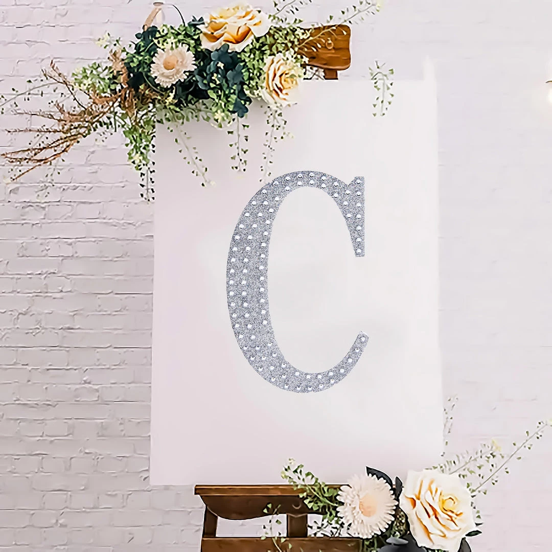 HIER_5150 8″ Silver Decorative Rhinestone Alphabet Letter Stickers DIY Crafts – C