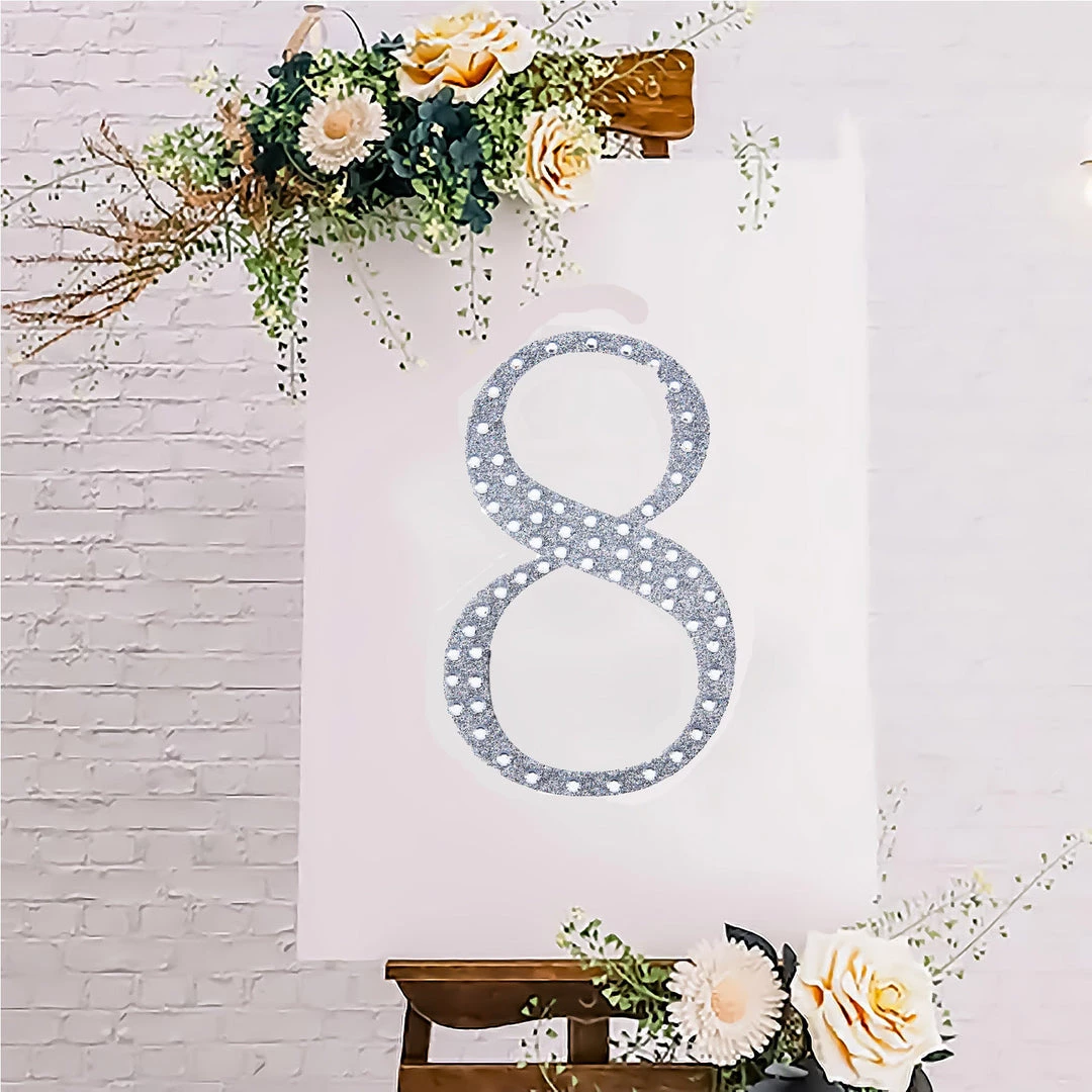 HIER_5150 8″ Silver Decorative Rhinestone Number Stickers DIY Crafts – 8