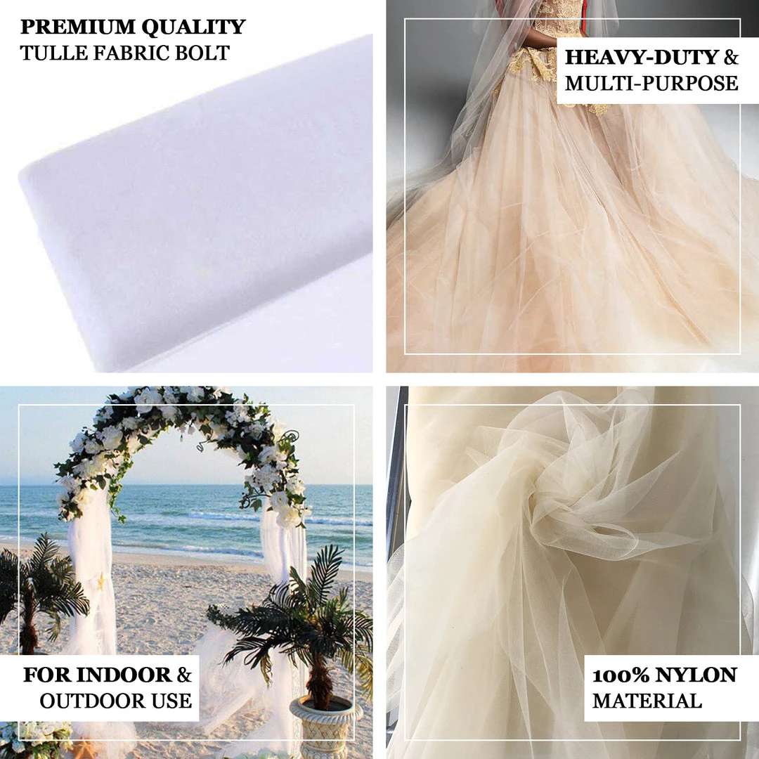 | The #1 versatile material. Great for headpieces, draping, backdrops, decorating tables, arches and much, much more. |