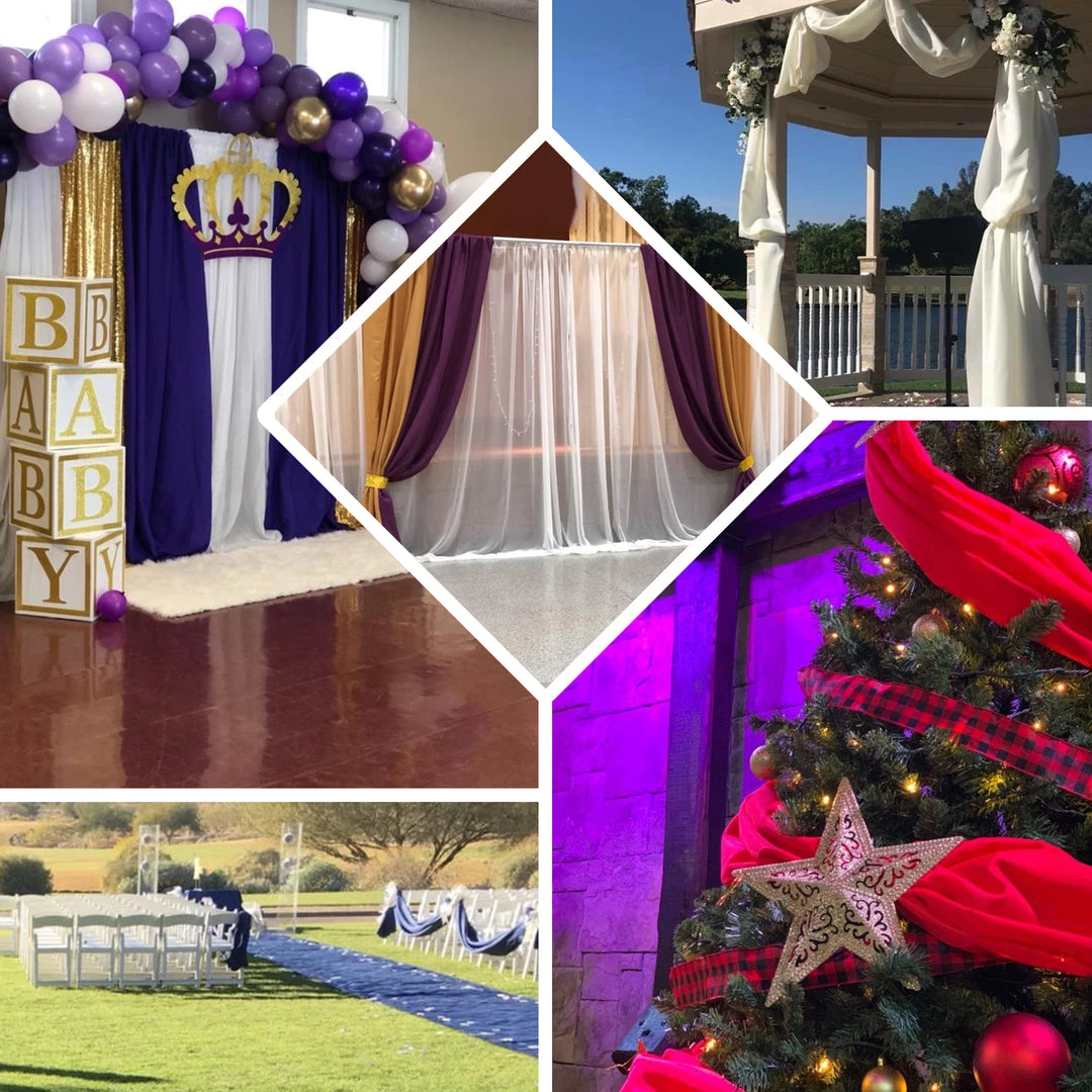 - Uses: Runners, DIY Crafts, Dress Making, Chair Seat Cushion, Curtains, also used to Decorate Wedding Arches, Photography Decorations and Backdrops. Great for Receptions, Bridal and Baby Showers, Quinceaneras, Reunions, Anniversary Parties, Catered Events, Banquet, Restaurants.