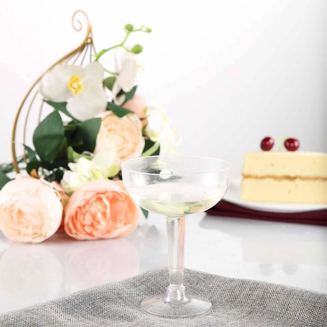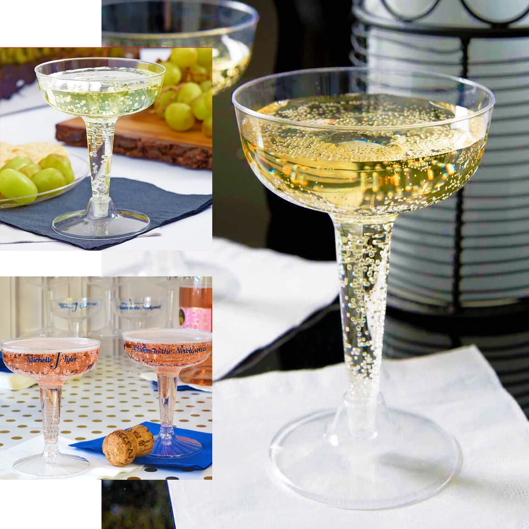 Let your festive parties and merry events reflect class and style. Celebrate your special moments in exquisite style with our elite Crystal Collection of Stemware; featuring swish Champagne Glasses, Margarita cups, Martini glasses, Shot glasses, and Tumblers etc. made from premium quality plastic, these chic Champagne glasses are a perfect blend of affordability and durability. The crystal clear plastic mimics real glass and makes your desserts and drinks look temptingly delicious. Unlike glass, these plastic glasses wont shatter when dropped, this attribute make them an ideal stemware to be used for family and children functions. With the elegance of upscale glass and cost-effectiveness of plastic, these Champagne glasses are perfect for weddings, bars, casual restaurants, catering events, cocktails parties, clubs, and event for home use. With our Disposable Champagne Glasses, cleaning up time is a breeze!