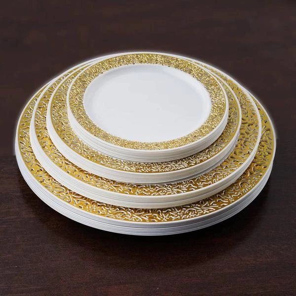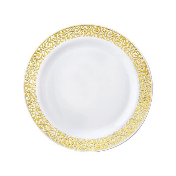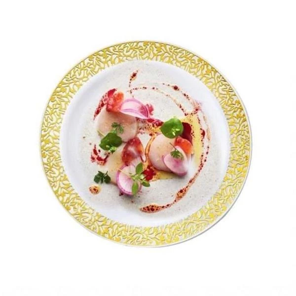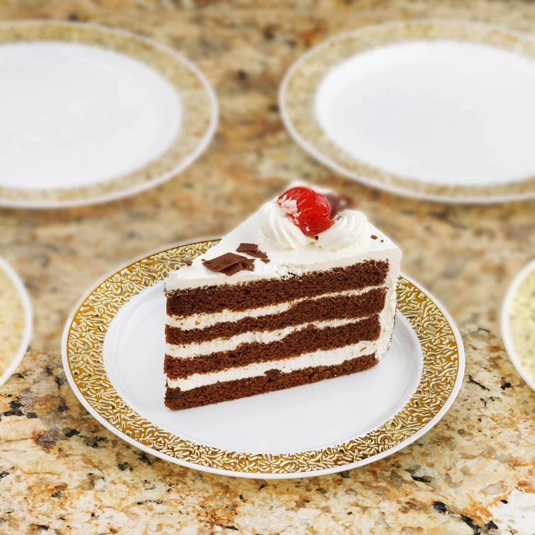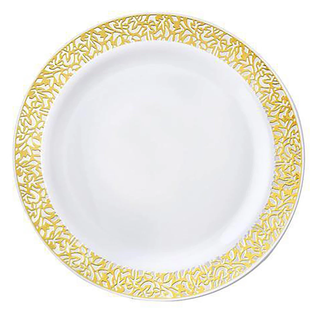 Create an elegant and sophisticated presentation at your upcoming special event or a festive meal with these classy disposable plastic plates. Our astounding collection of picturesque dessert plates combines the convenience of plastic with the charismatic appeal of real china. With these beguiling salad plates, make your cleanup time a cinch for any occasion. Whether its a jubilant birthday party or a festive wedding reception; these appetizer plates are an ideal choice for salads, cereals, main course, desserts, appetizers, and more.