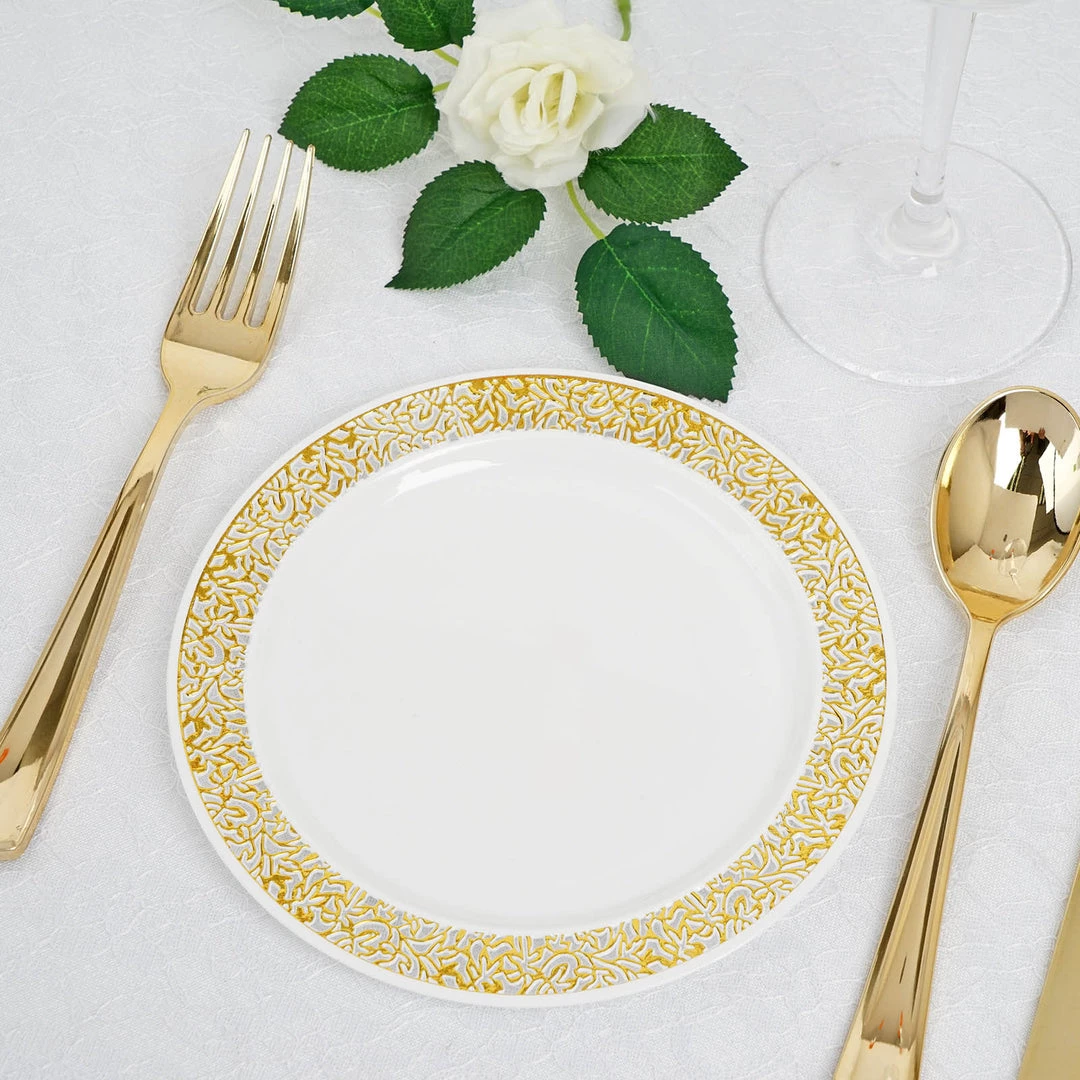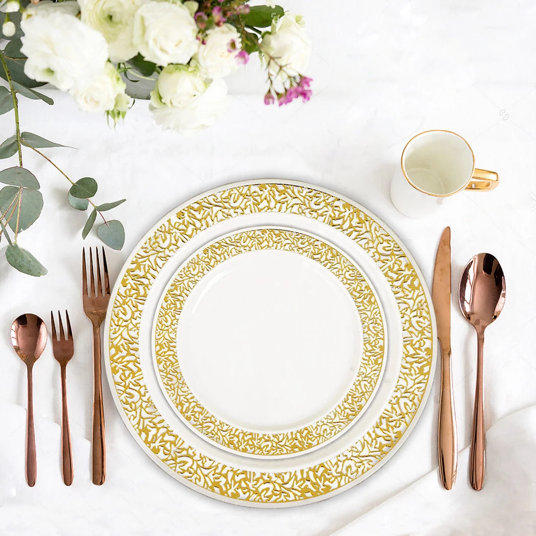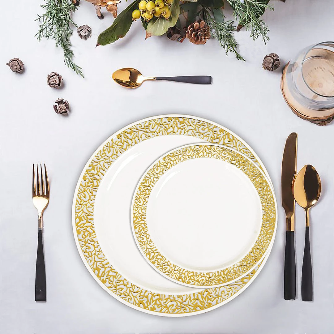 Create an elegant and sophisticated presentation at your upcoming special event or a festive meal with these classy disposable plastic plates. Our astounding collection of picturesque dessert plates combines the convenience of plastic with the charismatic appeal of real china. With these beguiling salad plates, make your cleanup time a cinch for any occasion. Whether its a jubilant birthday party or a festive wedding reception; these appetizer plates are an ideal choice for salads, cereals, main course, desserts, appetizers, and more.