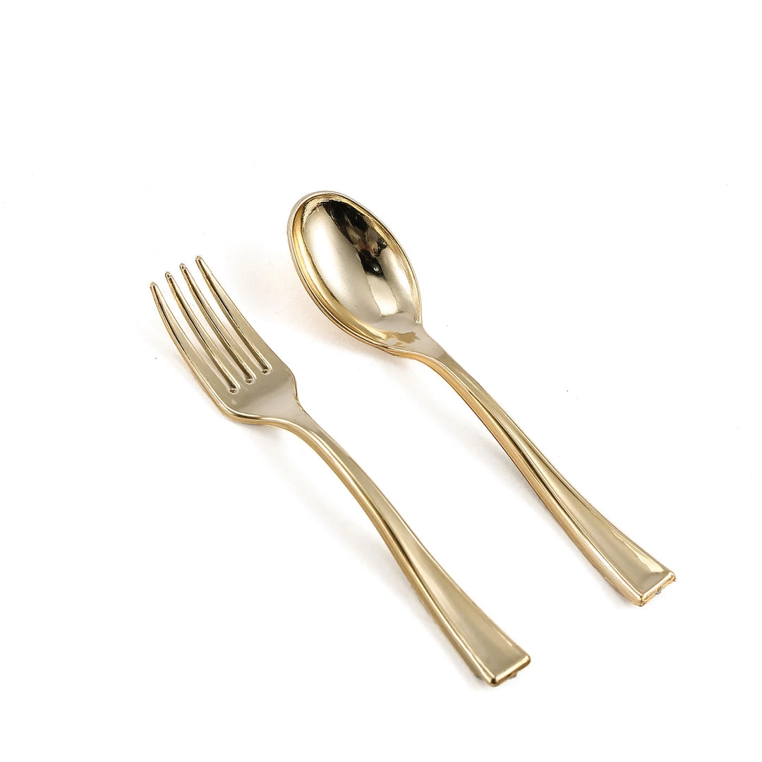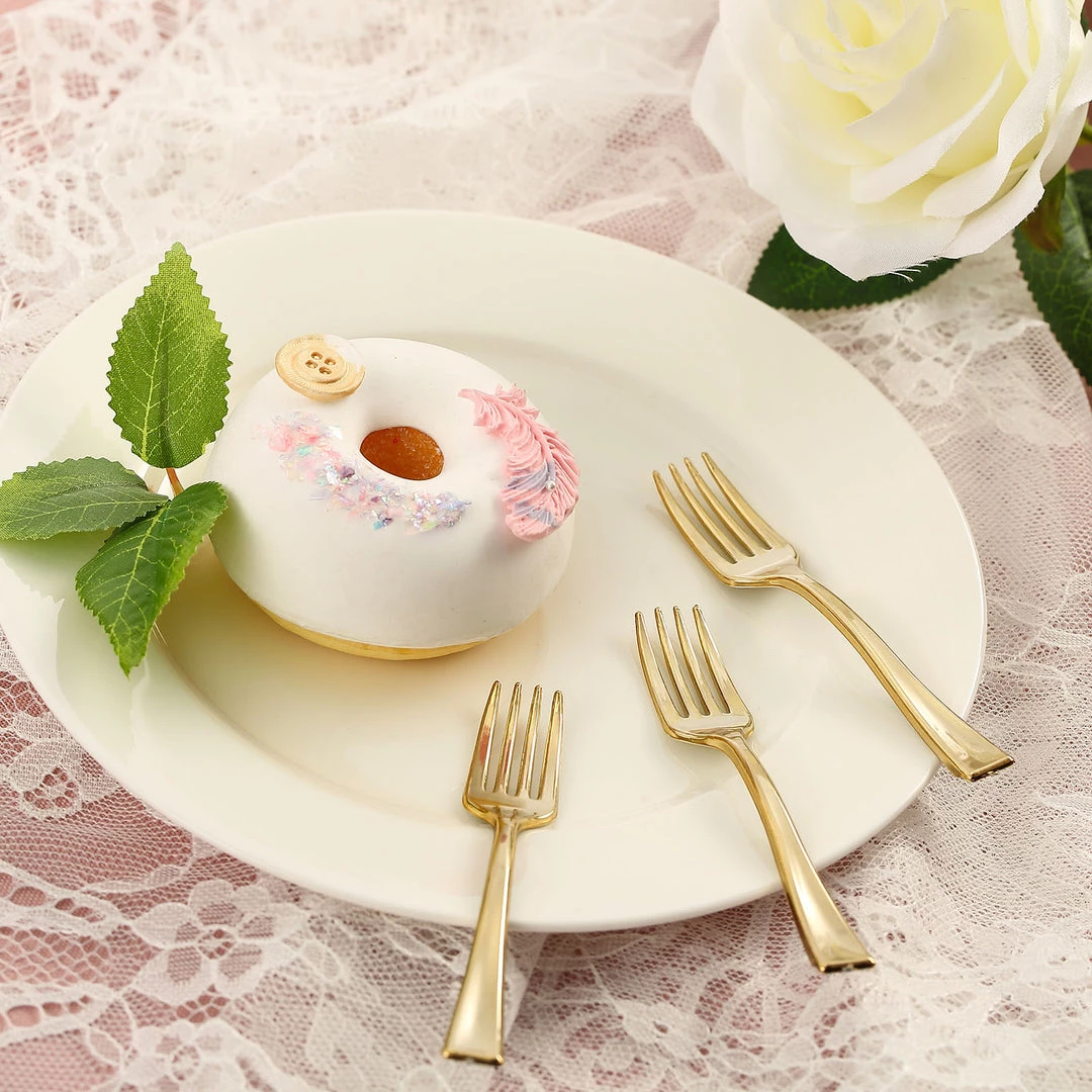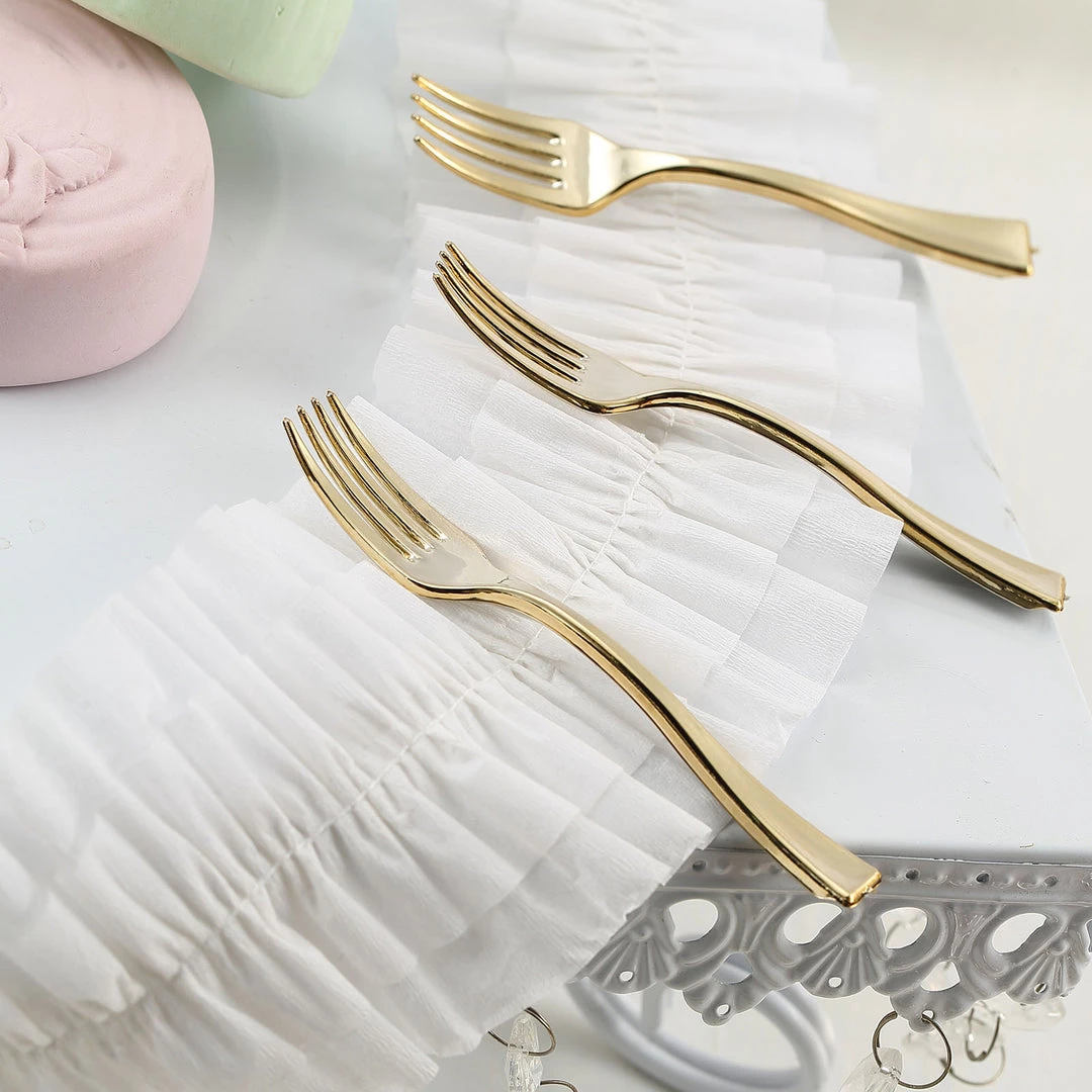 HIER_5460 24 Pack | Metallic Gold 8″ Baroque Style Heavy Duty Plastic Forks Disposable Dinnerware